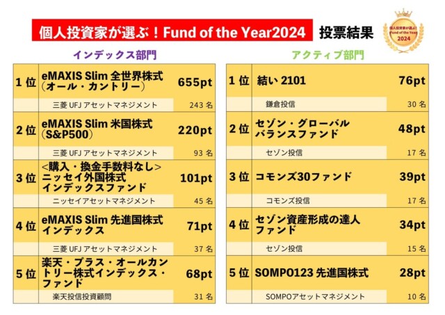 それでは、個人投資家が選ぶ! Fund of the Year 2024結果発表です!